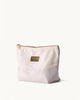 A sleek toiletry bag in soft white velvet with gold details. It holds your everyday beauty essentials and small items in a practical way, both at home and while traveling. Also an excellent gift option.