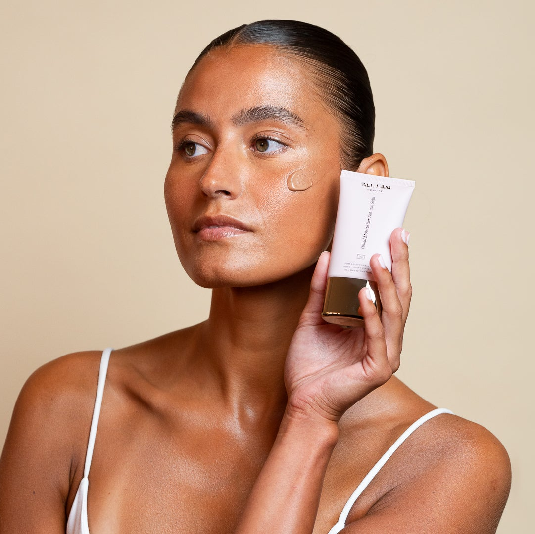 Till skillnad från andra färgade dagkrämer som antingen känns som en tung foundation i förklädnad eller ger för lite effekt, är ALL I AM Tinted Moisturizer utvecklad för balans. Den kombinerar återfuktning och lätt färg på ett sätt som förbättrar hudens utseende utan att täcka över den.
